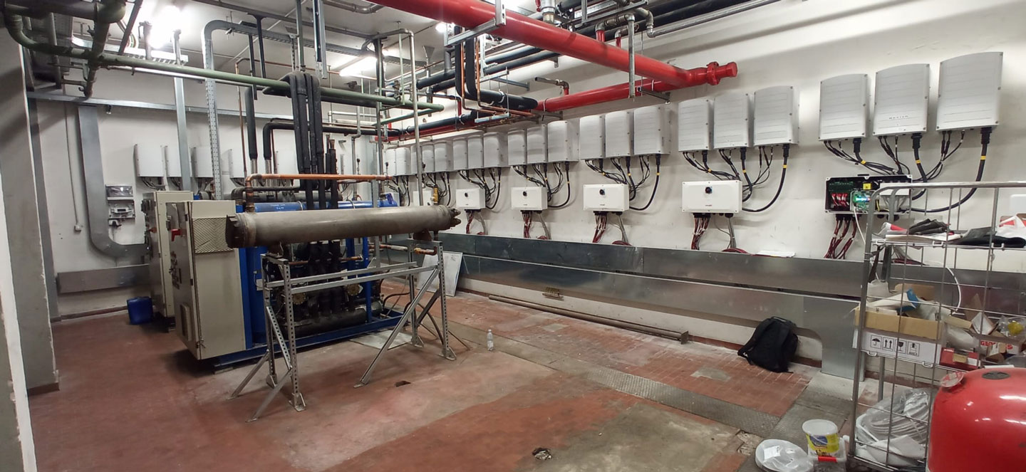 La conversione in corrente alternata è affidata a 10 inverter marca Solaredge che grazie alla loro avanzata tecnologia permettono di ottimizzare la produzione elettrica dell’impianto.