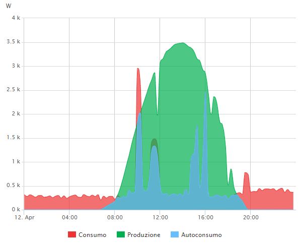 Prendiamo un giorno di produzione tipo di un impianto fotovoltaico residenziale da noi realizzato: