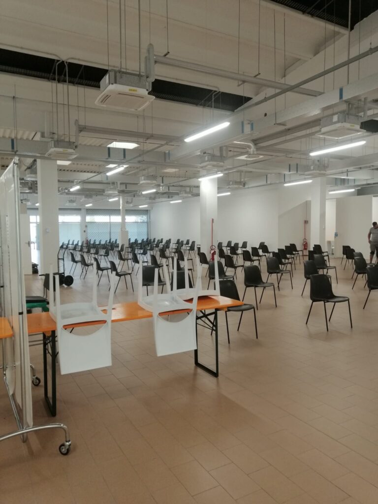 Di seguito riportiamo alcune fotografie realizzate durante i lavori e alcune foto dell’hub vaccinale realizzato.